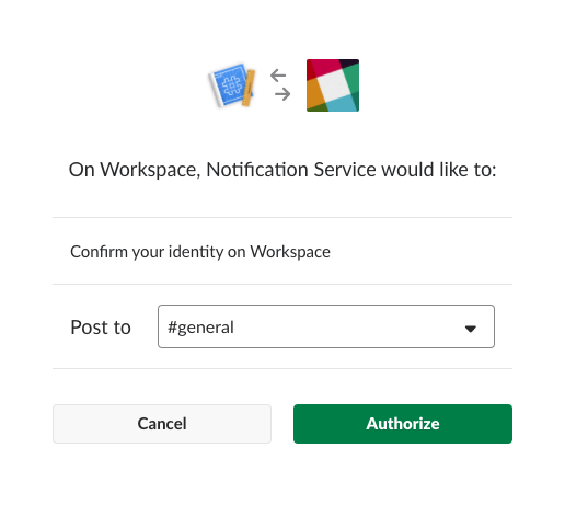 Autorizando a publicação via Incoming Webhooks no canal #general